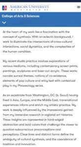 American University Museum, Washington, D.C. College of Arts & Sciences – Artist Interview “Genie Ghim” (April 2024)